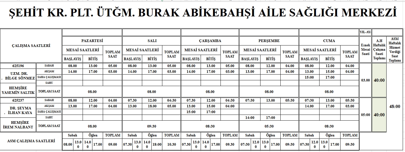 Çalışma Saatlerimiz